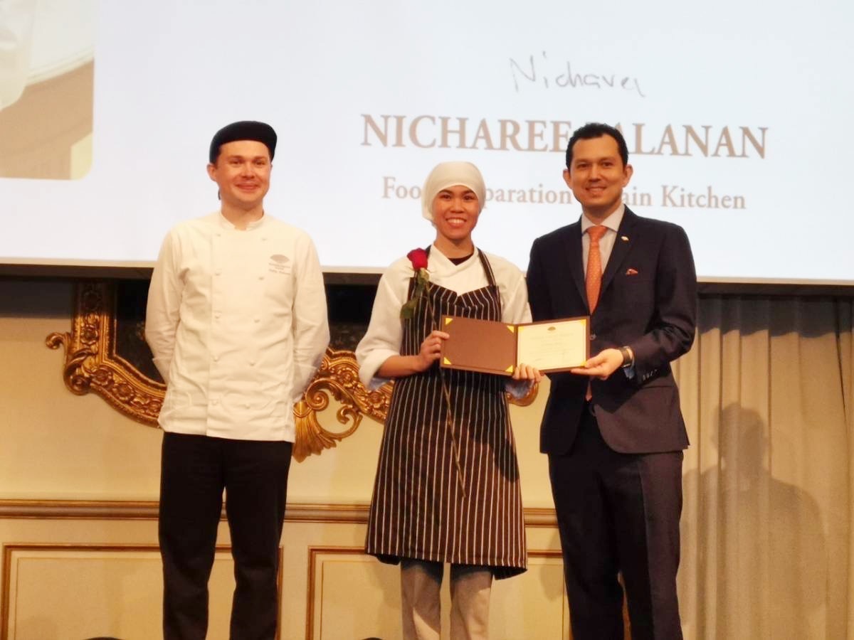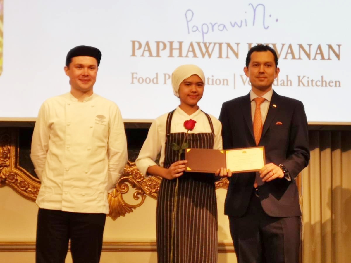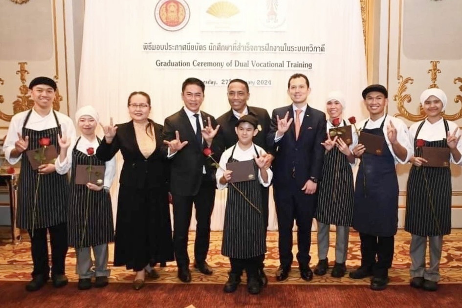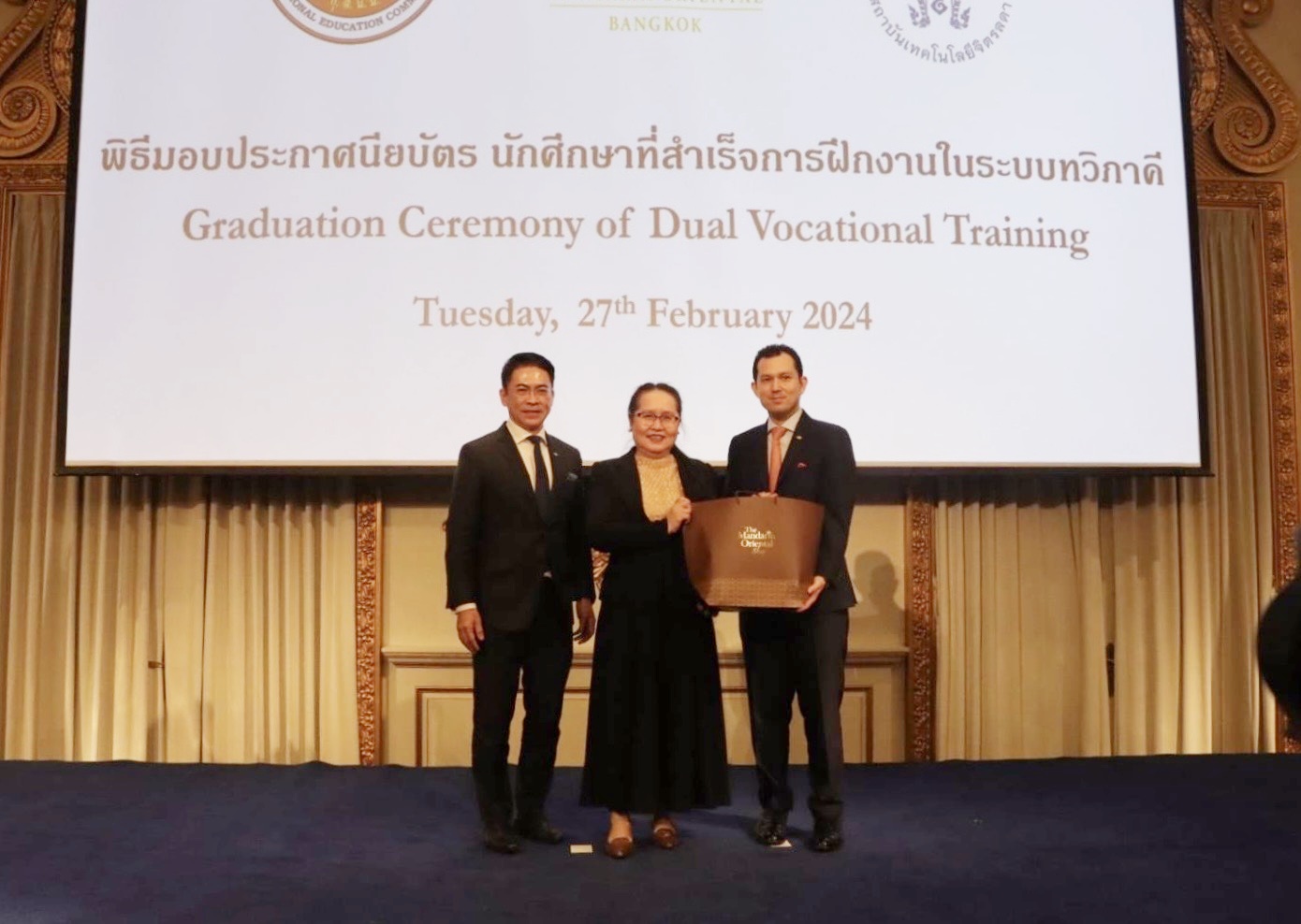 วันที่ 27กุมภาพันธ์ 2567นักศึกษาทวิภาคี สาขาวิชาอาหารและโภชนาการ วิทยาลัยอาชีวศึกษาลำปาง (ศูนย์ส่งเสริมการจัดการศึกษาพิเศษอาชีวศึกษาจังหวัดลำปาง) โดยการนำของ ดร.ยุภารณ์ เทพจันทร์ ผู้อำนวยการฯ ผ่านเกณฑ์การฝึกเตรียมปฏิบัติงานโรงแรมแมนดาริน โอเรียนเต็ล กรุงเทพฯ เข้าฝึกประสบการณ์วิชาชีพ และได้รับคัดเลือกให้เข้าทำงานทันที จำนวน 3คน โดยมี เรืออากาศโท สมพร ปานดำ รองเลขาธิการคณะกรรมการการอาชีวศึกษา เข้าร่วมพิธีมอบประกาศเกียรติบัตร สำหรับนักศึกษาทวิภาคี ที่ผ่านเกณฑ์การฝึกเตรียมปฏิบัติงาน ประจำปี 2566จาก 20สถานศึกษาทั่วประเทศ จำนวน 101คน มี นายอเล็กซ์ ไมเคิล ฮูวล์ ผู้จัดการทั่วไป และนายอิทธิพล วิทจิตสมบูรณ์ ผู้อำนวยการฝ่ายทรัพยากรบุคคล และนายสมพูน ถนอมมงคล ผู้ประสานความร่วมมือฝ่ายทรัพยากรบุคคล และคณะผู้บริหารโรงแรมแมนดาริน โอเรียนเต็ล กรุงเทพฯ พร้อมด้วยผู้บริหารสถานศึกษาอาชีวศึกษา เข้าร่วมพิธี ณ โรงแรมแมนดาริน โอเรียนเต็ล กรุงเทพฯ
