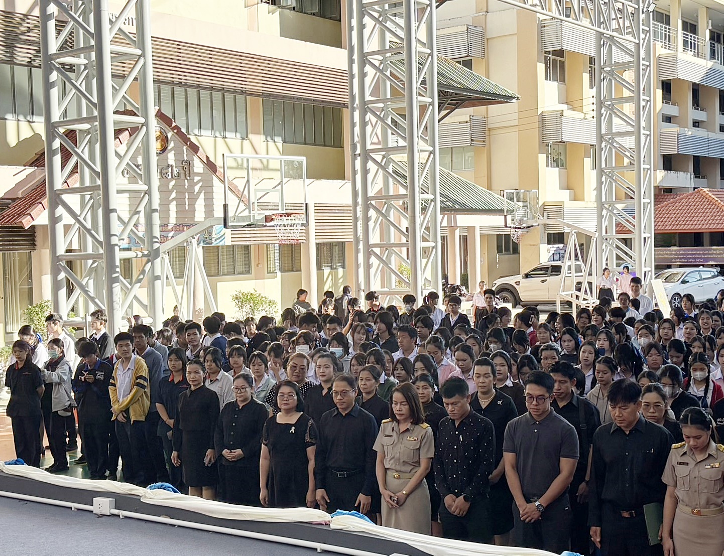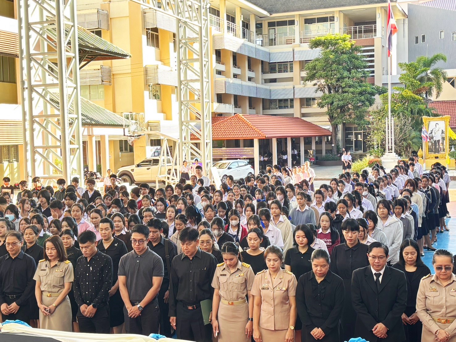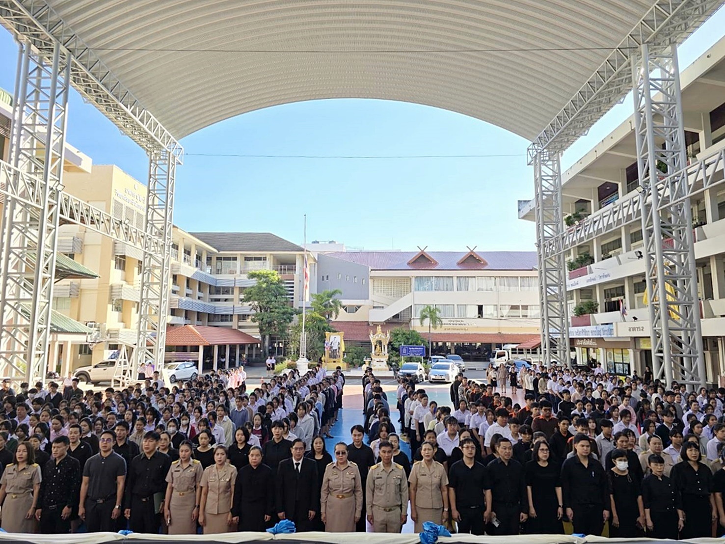วันจันทร์ที่ 27 ตุลาคม 2568 เวลา 07.40 น. กิจกรรมเข้าแถวหน้าเสาธง ดร.ยุภาภรณ์ เทพจันทร์ ผู้อำนวยการวิทยาลัยอาชีวศึกษาลำปาง พร้อมด้วยคณะผู้บริหาร ครู บุคลากรทางการศึกษา และนักเรียน นักศึกษา แสดงความอาลัยถวายสมเด็จพระนางเจ้าสิริกิติ์ พระบรมราชินีนาถ พระบรมราชชนนีพันปีหลวง ด้วยสำนึกในพระมหากรุณาธิคุณเป็นล้นพ้นอันหาที่สุดมิได้ ณ วิทยาลัยอาชีวศึกษาลำปาง อำเภอเมืองลำปาง จังหวัดลำปาง