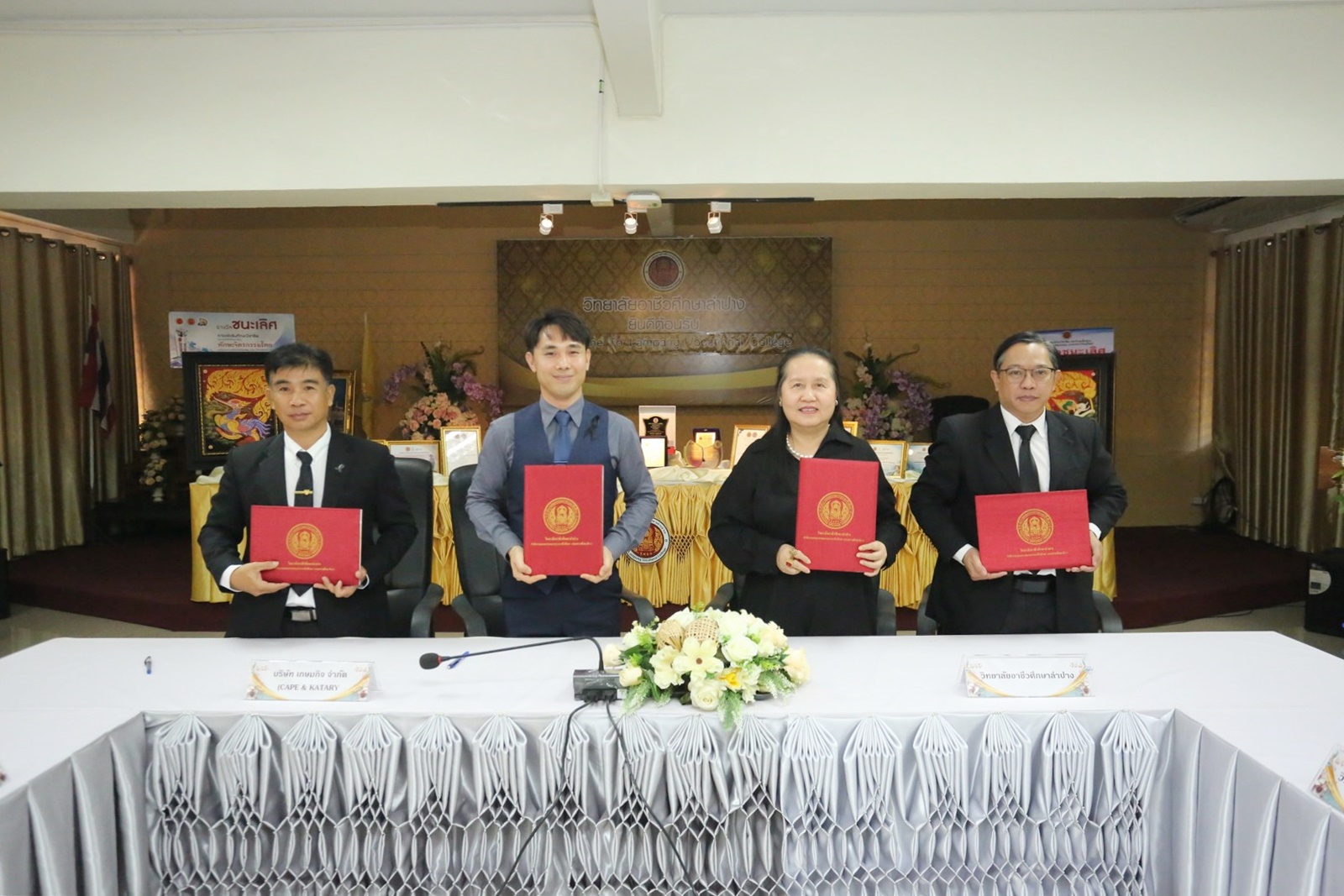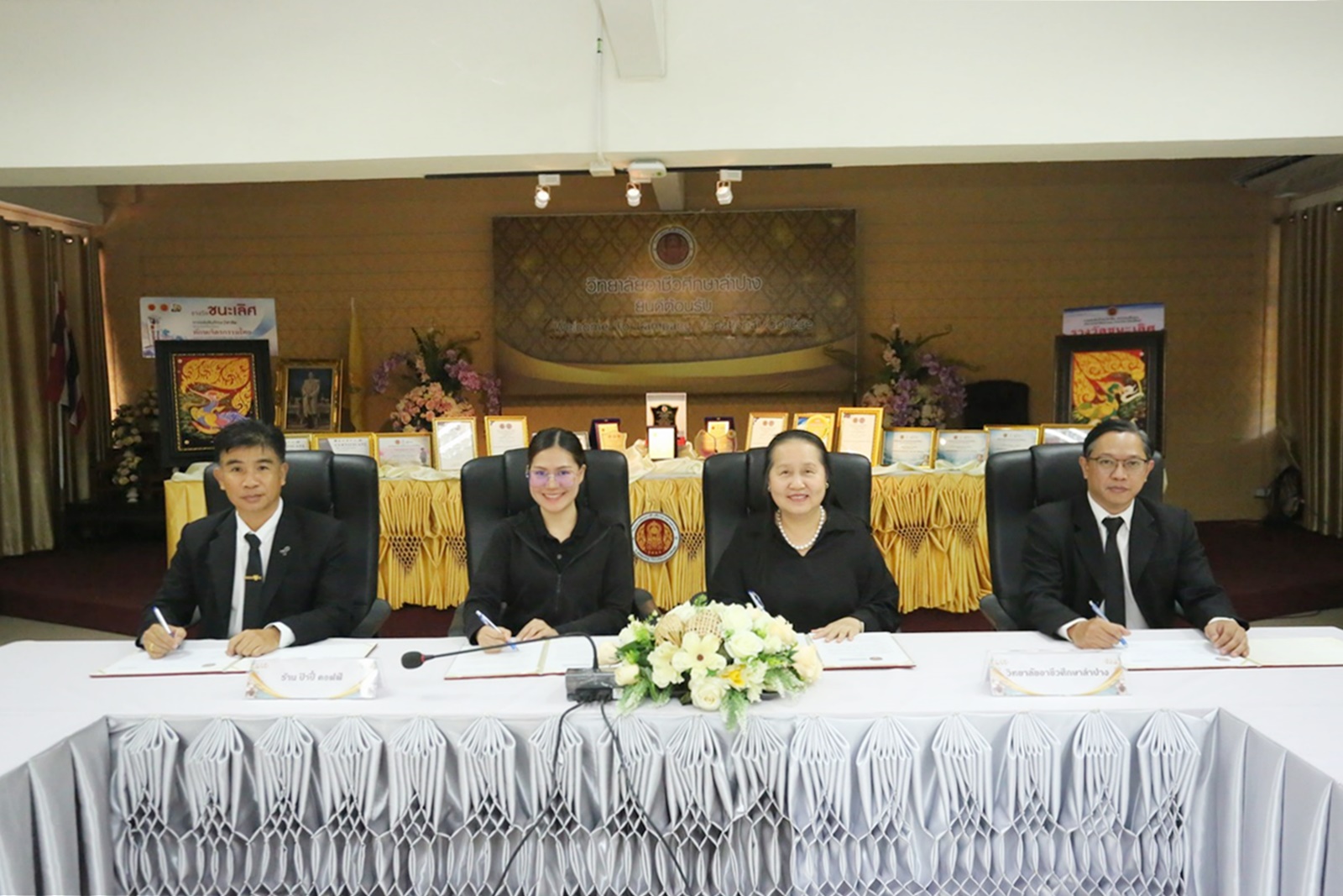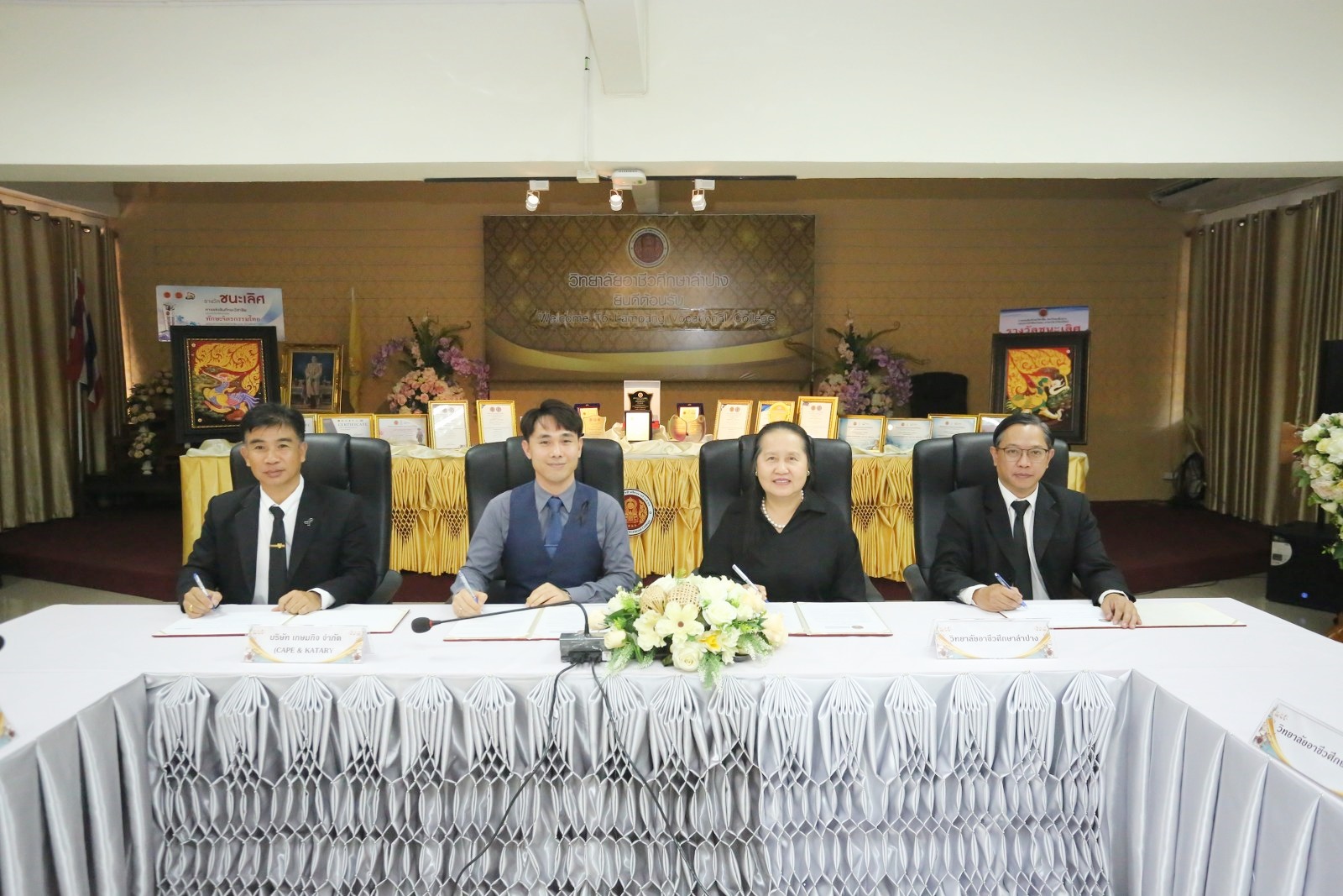 วันพฤหัสบดีที่ 4 ธันวาคม 2568 วิทยาลัยอาชีวศึกษาลำปาง โดย ดร.ยุภาภรณ์ เทพจันทร์ ผู้อำนวยการวิทยาลัยอาชีวศึกษาลำปาง ลงนามบันทึกข้อตกลงความร่วมมือ (MOU) การจัดการศึกษาด้านอาชีวศึกษาระบบทวิภาคี ร่วมกับสถานประกอบการ โดยผู้แทนจากสถานประกอบการ จำนวน 6 แห่ง ดังนี้ ร้านป้าปี๋ คอฟฟี่, ร้านข้าวต้มอร่อยบาทเดียว, บริษัท นอร์ทเทอร์นสยาม ซีดแลค จำกัด, บริษัท ยูคลาวด์ จำกัด, บริษัท สวีท แดรี่ จำกัด (ร้านกาแฟพันธุ์ไทย สาขาศรีปงชัย) และบริษัท เกษมกิจ จำกัด ซึ่งเป็นบันทึกข้อตกลงสำหรับนักศึกษาแผนกวิชาการจัดการธุรกิจค้าปลีก และแผนกวิชาการโรงแรม เพื่อสร้างความร่วมมือระหว่างวิทยาลัยฯ กับสถานประกอบการในการจัดการศึกษาระบบทวิภาคีให้มีสมรรถนะที่เหมาะสมในการทำงาน สนับสนุนและส่งเสริมให้นักเรียน นักศึกษาฝึกประสบการณ์วิชาชีพในสถานประกอบการจากการปฏิบัติงานจริง และสร้างโอกาสการมีงานทำ ทั้งนี้ มีรองผู้อำนวยการ วอศ.ลำปาง ร่วมเป็นสักขีพยานในพิธีลงนาม ณ ห้องประชุมอาคารวิทยบริการ วิทยาลัยอาชีวศึกษาลำปาง