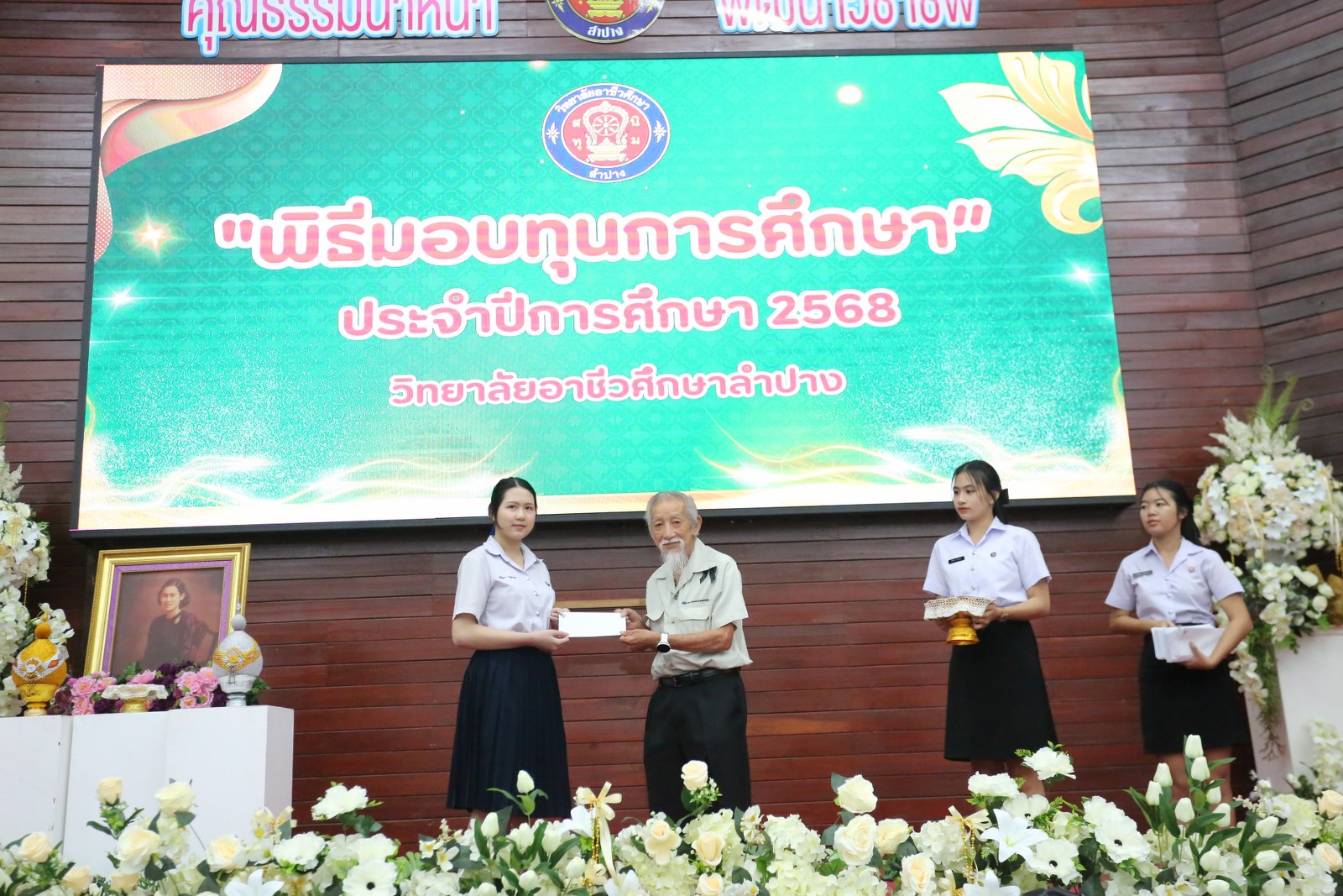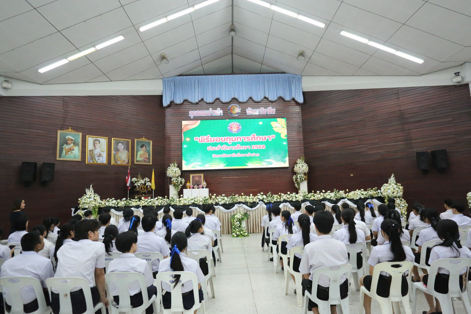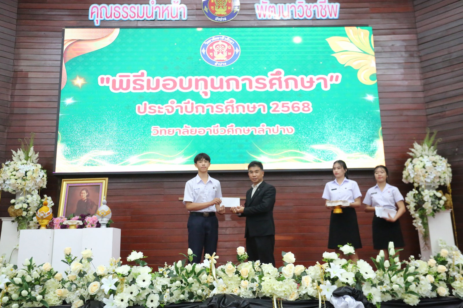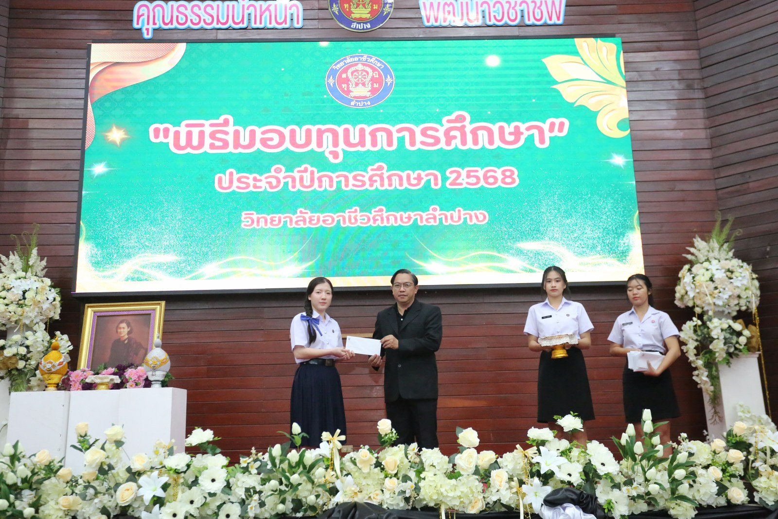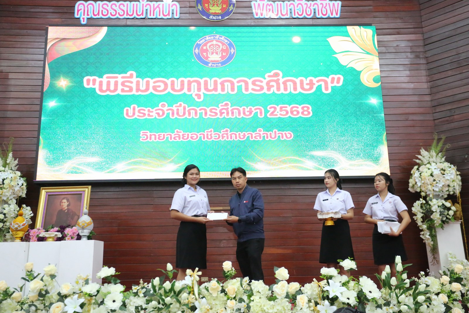 วันพุธที่ 17 ธันวาคม 2568 เวลา 13.00 น. ดร.ยุภาภรณ์ เทพจันทร์ ผู้อำนวยการวิทยาลัยอาชีวศึกษาลำปาง เป็นประธานพิธีมอบทุนการศึกษา ประจำปีการศึกษา 2568ซึ่งเป็นการระดมทุนจากหน่วยงาน องค์กร มูลนิธิ บุคคล สนับสนุนทุนการศึกษาให้แก่นักเรียน นักศึกษาที่มีผลการเรียนดี มีความประพฤติดี บำเพ็ญประโยชน์ต่อวิทยาลัยฯ เพื่อเพิ่มโอกาสทางการศึกษาให้ได้รับการศึกษาต่อเนื่องถึงระดับที่สูงขึ้น โดยได้จัดสรรทุนทั้งสิ้นจำนวน 75 ทุน ดังนี้ ทุนเรียนดี 19 ทุน, ทุนขาดแคลนทุนทรัพย์ 16 ทุน, ทุนบำเพ็ญประโยชน์แก่วิทยาลัยฯ 11 ทุน, ทุนเป็นกรณีพิเศษ 4 ทุน และทุนจากองค์กร 25 ทุน มีผู้แทนจากหน่วยงาน บุคคล คณะผู้บริหาร คณะครูวิทยาลัยอาชีวศึกษาลำปางร่วมมอบทุนการศึกษา ณ อาคารหอประชุม วิทยาลัยอาชีวศึกษาลำปาง อำเภอเมือง จังหวัดลำปาง