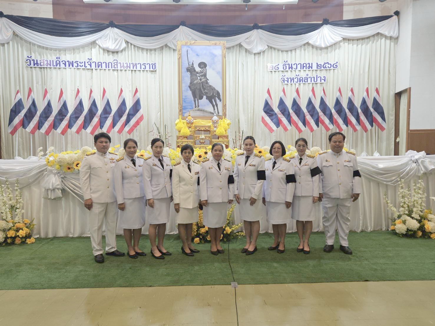 วันอาทิตย์ที่ 28 ธันวาคม 2568 ดร.ยุภาภรณ์ เทพจันทร์ ผู้อำนวยการวิทยาลัยอาชีวศึกษาลำปาง มอบหมายให้ นางสาวอภิวันท์ จักรคำ รองผู้อำนวยการฝ่ายพัฒนากิจการนักเรียน นักศึกษา นำคณะครูเข้าร่วมงานวันรัฐพิธี "วันสมเด็จพระเจ้าตากสินมหาราช" วีรบุรุษผู้กู้ชาติ ประจำปี 2568 เพื่อน้อมรำลึกถึงพระมหากรุณาธิคุณและพระปรีชาสามารถของพระองค์ ซึ่งเป็นวันที่พระองค์ทรงปราบดาภิเษกเป็นพระมหากษัตริย์ผู้กอบกู้เอกราชจากพม่าให้กับชาติไทย พิธีดังกล่าวจัดขึ้น ณ หอประชุมจังหวัดลำปาง ศาลากลางจังหวัดลำปาง อำเภอเมืองจังหวัดลำปาง