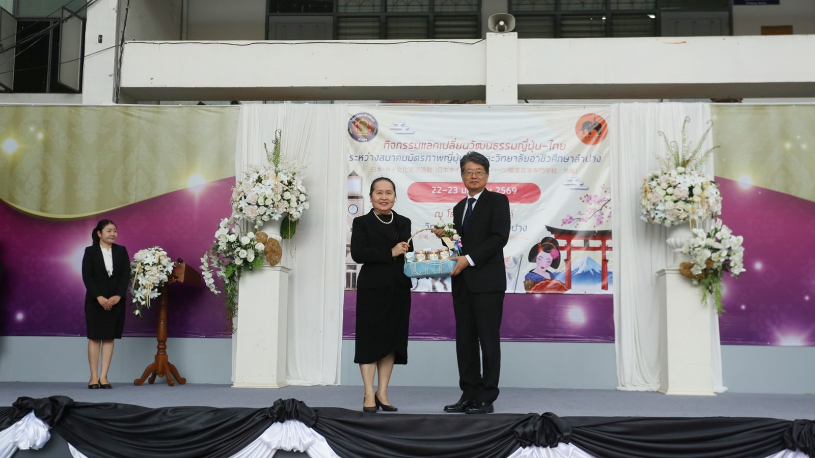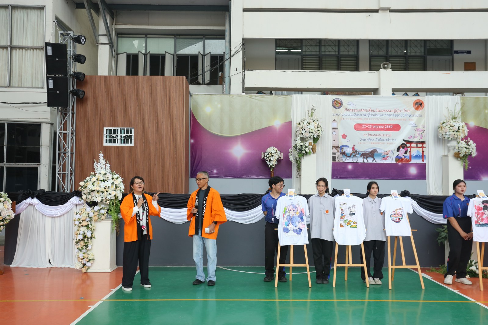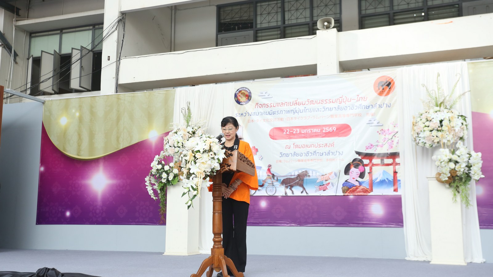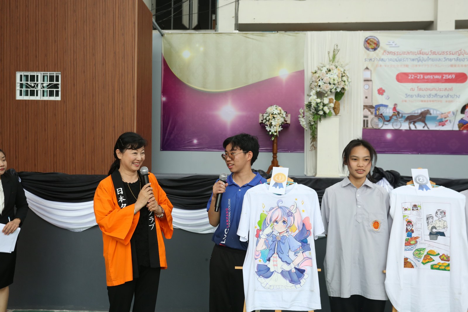 วันศุกร์ที่ 23 มกราคม 2569 เวลา 08.30 น. สมาคมมิตรภาพญี่ปุ่น-ไทย ร่วมกับ วิทยาลัยอาชีวศึกษาลำปาง จัดกิจกรรมแลกเปลี่ยนวัฒนธรรมระหว่างสมาคมมิตรภาพญี่ปุ่น-ไทย และวิทยาลัยอาชีวศึกษาลำปาง โดยมีดร.ยุภาภรณ์ เทพจันทร์ ผู้อำนวยการวิทยาลัยอาชีวศึกษาลำปาง กล่าวต้อนรับ Mr.Masaru Harada กงสุลใหญ่ญี่ปุ่น ณ นครเชียงใหม่ และชาวญี่ปุ่นสมาคมมิตรภาพญี่ปุ่น-ไทย โอกาสนี้ กงสุลใหญ่ญี่ปุ่น ณ นครเชียงใหม่ ได้กล่าวทักทายและชื่นชมยินดีในการจัดกิจกรรมสร้างเสริมมิตรภาพและกระชับความสัมพันธ์ในครั้งนี้ Mrs.SUMIE (KIMOTO) TAKEUCHI นายกสมาคมมิตรภาพไทย-ญี่ปุ่น กล่าวถึงวัตถุประสงค์การจัดกิจกรรม ซึ่งประกอบไปด้วยกิจกรรมการสอนทำแกงกะหรี่ญี่ปุ่น สลัดผักฟิลเลย์ไอซ์เบิร์กซอสงาญี่ปุ่น สูตรต้นตำรับสอนโดยชาวญี่ปุ่น, การประกวดเพ้นท์เสื้อยืดด้วยสีอะคริลิคสร้างสรรค์แรงบันดาลใจจากอนิเมะ และการเต้นรำพื้นบ้านญี่ปุ่น “อาวะโอโดริแห่งเมืองโทคุชิมะ” ซึ่งเป็นประเพณีหนึ่งเดียวในโลกที่มีประวัติความเป็นมายาวนานกว่า 400 ปี บรรยากาศเต็มไปด้วยความอบอุ่น สนุกสนานจัดขึ้น ณ บริเวณโดมอเนกประสงค์ วิทยาลัยอาชีวศึกษาลำปาง