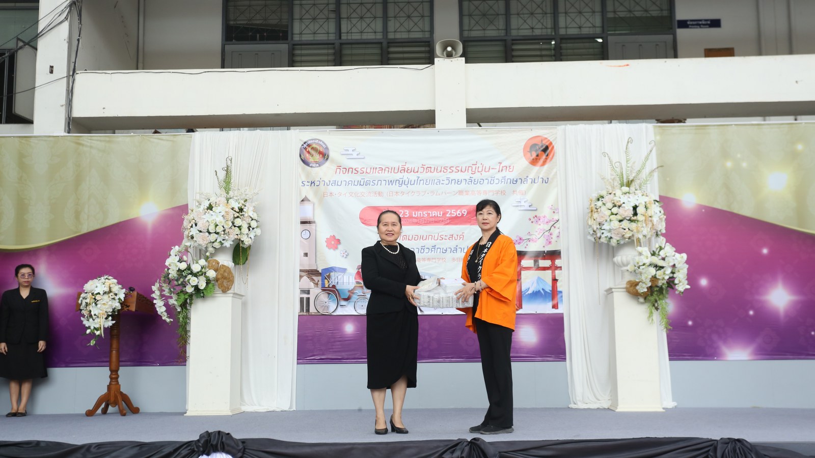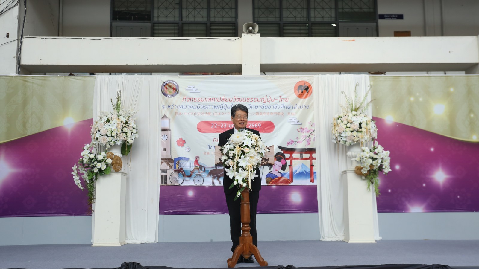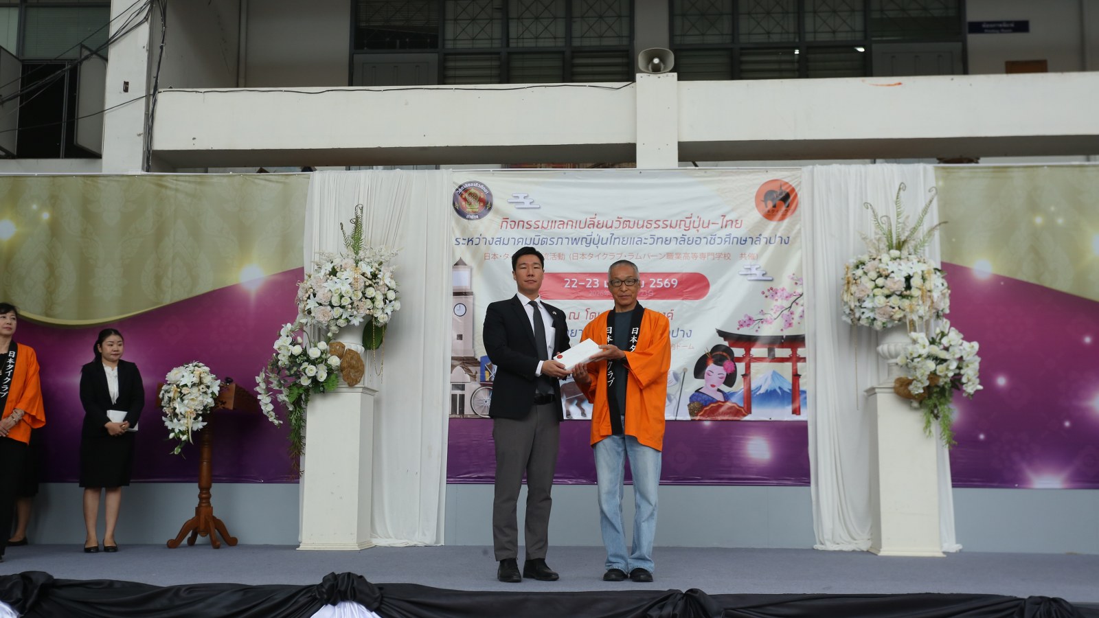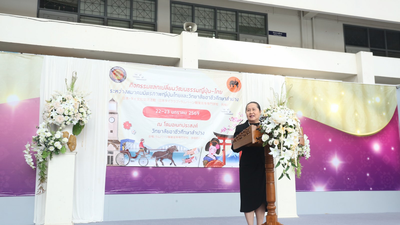 วันศุกร์ที่ 23 มกราคม 2569 เวลา 08.30 น. สมาคมมิตรภาพญี่ปุ่น-ไทย ร่วมกับ วิทยาลัยอาชีวศึกษาลำปาง จัดกิจกรรมแลกเปลี่ยนวัฒนธรรมระหว่างสมาคมมิตรภาพญี่ปุ่น-ไทย และวิทยาลัยอาชีวศึกษาลำปาง โดยมีดร.ยุภาภรณ์ เทพจันทร์ ผู้อำนวยการวิทยาลัยอาชีวศึกษาลำปาง กล่าวต้อนรับ Mr.Masaru Harada กงสุลใหญ่ญี่ปุ่น ณ นครเชียงใหม่ และชาวญี่ปุ่นสมาคมมิตรภาพญี่ปุ่น-ไทย โอกาสนี้ กงสุลใหญ่ญี่ปุ่น ณ นครเชียงใหม่ ได้กล่าวทักทายและชื่นชมยินดีในการจัดกิจกรรมสร้างเสริมมิตรภาพและกระชับความสัมพันธ์ในครั้งนี้ Mrs.SUMIE (KIMOTO) TAKEUCHI นายกสมาคมมิตรภาพไทย-ญี่ปุ่น กล่าวถึงวัตถุประสงค์การจัดกิจกรรม ซึ่งประกอบไปด้วยกิจกรรมการสอนทำแกงกะหรี่ญี่ปุ่น สลัดผักฟิลเลย์ไอซ์เบิร์กซอสงาญี่ปุ่น สูตรต้นตำรับสอนโดยชาวญี่ปุ่น, การประกวดเพ้นท์เสื้อยืดด้วยสีอะคริลิคสร้างสรรค์แรงบันดาลใจจากอนิเมะ และการเต้นรำพื้นบ้านญี่ปุ่น “อาวะโอโดริแห่งเมืองโทคุชิมะ” ซึ่งเป็นประเพณีหนึ่งเดียวในโลกที่มีประวัติความเป็นมายาวนานกว่า 400 ปี บรรยากาศเต็มไปด้วยความอบอุ่น สนุกสนานจัดขึ้น ณ บริเวณโดมอเนกประสงค์ วิทยาลัยอาชีวศึกษาลำปาง