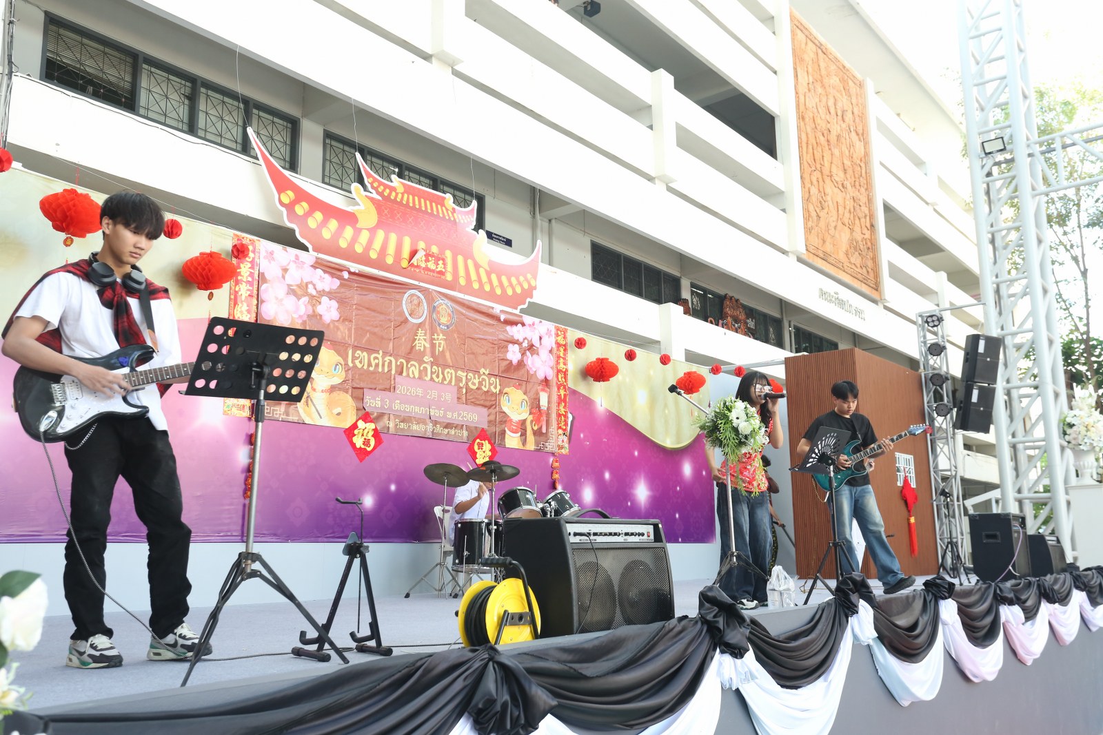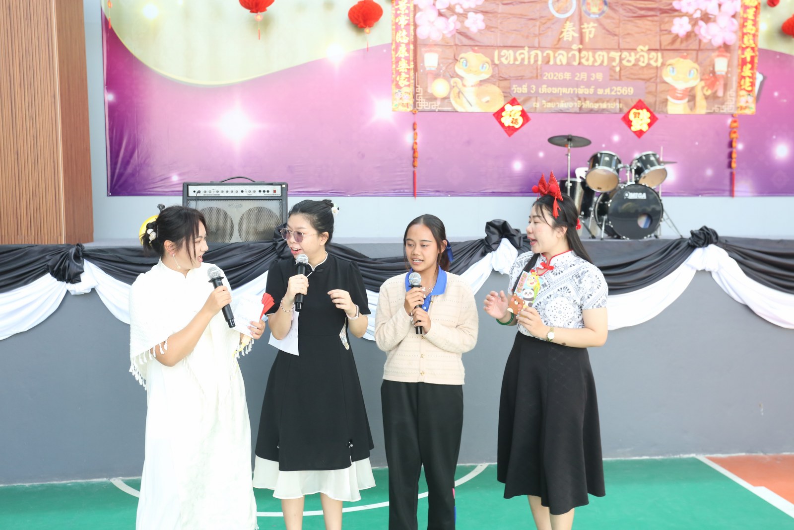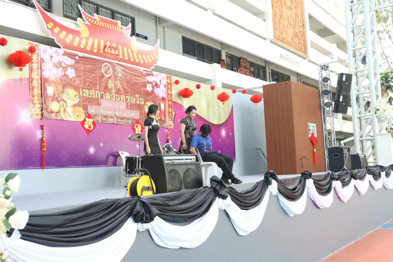 วันอังคารที่ 3 กุมภาพันธ์ 2569 เวลา 13.00 น. ดร.ยุภาภรณ์ เทพจันทร์ ผู้อำนวยการวิทยาลัยอาชีวศึกษาลำปาง เป็นประธานเปิดกิจกรรมเทศกาลตรุษจีน ประจำปี 2569 โดยมี นายบัญญัติ กันมาเวียง รองผู้อำนวยการฝ่ายวิชาการ กล่าวรายงาน เพื่อส่งเสริมทักษะด้านภาษาและวัฒนธรรมจีน และร่วมเฉลิมฉลอง สร้างเสริมความสัมพันธ์อันดีระหว่างสองประเทศที่มีต่อกันมาอย่างยาวนาน ทั้งนี้ ก่อนเริ่มกิจกรรมได้ยืนสงบนิ่งถวายความอาลัยแด่สมเด็จพระนางเจ้าสิริกิติ์ พระบรมราชินีนาถ พระบรมราชชนนีพันปีหลวง เป็นเวลา 93 วินาที ในการนี้ มีคณะครูแผนกวิชาทักษะชีวิต และ Miss Wang Yanni ครูชาวจีน ดำเนินกิจกรรมหลากหลายเพื่อให้นักเรียน นักศึกษาได้เรียนรู้และร่วมสนุก เช่น การเขียนพู่กันจีน การทำโคมจีน การผู้เชือกจีน การชงชาจีน การตอบคำถามภาษาจีน การแสดงความสามารถอย่างสร้างสรรค์ จัดขึ้น ณ โดมอเนกประสงค์ วิทยาลัยอาชีวศึกษาลำปาง อำเภอเมือง จังหวัดลำปาง