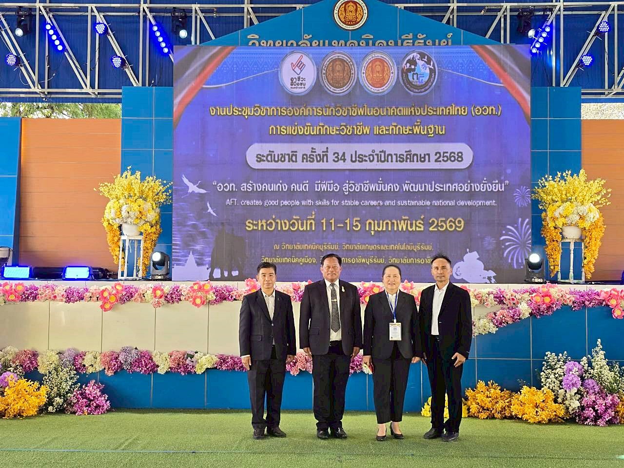 วันพฤหัสบดีที่ 12 กุมภาพันธ์ 2569 เวลา 10.00 น. นายยศพล เวณุโกเศศ เลขาธิการคณะกรรมการการอาชีวศึกษา เป็นประธานพิธีเปิดงานประชุมวิชาการองค์การนักวิชาชีพในอนาคตแห่งประเทศไทย (อวท.) การแข่งขันทักษะวิชาชีพ ทักษะพื้นฐาน ระดับชาติ ครั้งที่ 34 ปีการศึกษา 2568 ในการนี้ ดร.ยุภาภรณ์ เทพจันทร์ ผู้อำนวยการวิทยาลัยอาชีวศึกษาลำปาง พร้อมด้วยรองผู้อำนวยการฝ่ายวิชาการ รองผู้อำนวยการฝ่ายพัฒนากิจการนักเรียน นักศึกษา นำครูที่ปรึกษาองค์การนักวิชาชีพฯ สมาชิก อวท. และครูผู้ควบคุมทักษะ นักเรียน นักศึกษาที่เข้าร่วมการแข่งขันทักษะ เข้าร่วมพิธีเปิด ณ โดมอเนกประสงค์ วิทยาลัยเทคนิคบุรีรัมย์ซึ่งจัดขึ้นระหว่างวันที่ 10 – 15 กุมภาพันธ์ 2569 เพื่อให้สมาชิก อวท. ได้แลกเปลี่ยนเรียนรู้ทางวิชาการ มีเจตคติที่ดีต่อวิชาชีพ และเพื่อเผยแพร่กิจกรรมของสถานศึกษาในสังกัดสำนักงานคณะกรรมการการอาชีวศึกษาต่อสาธารณชน