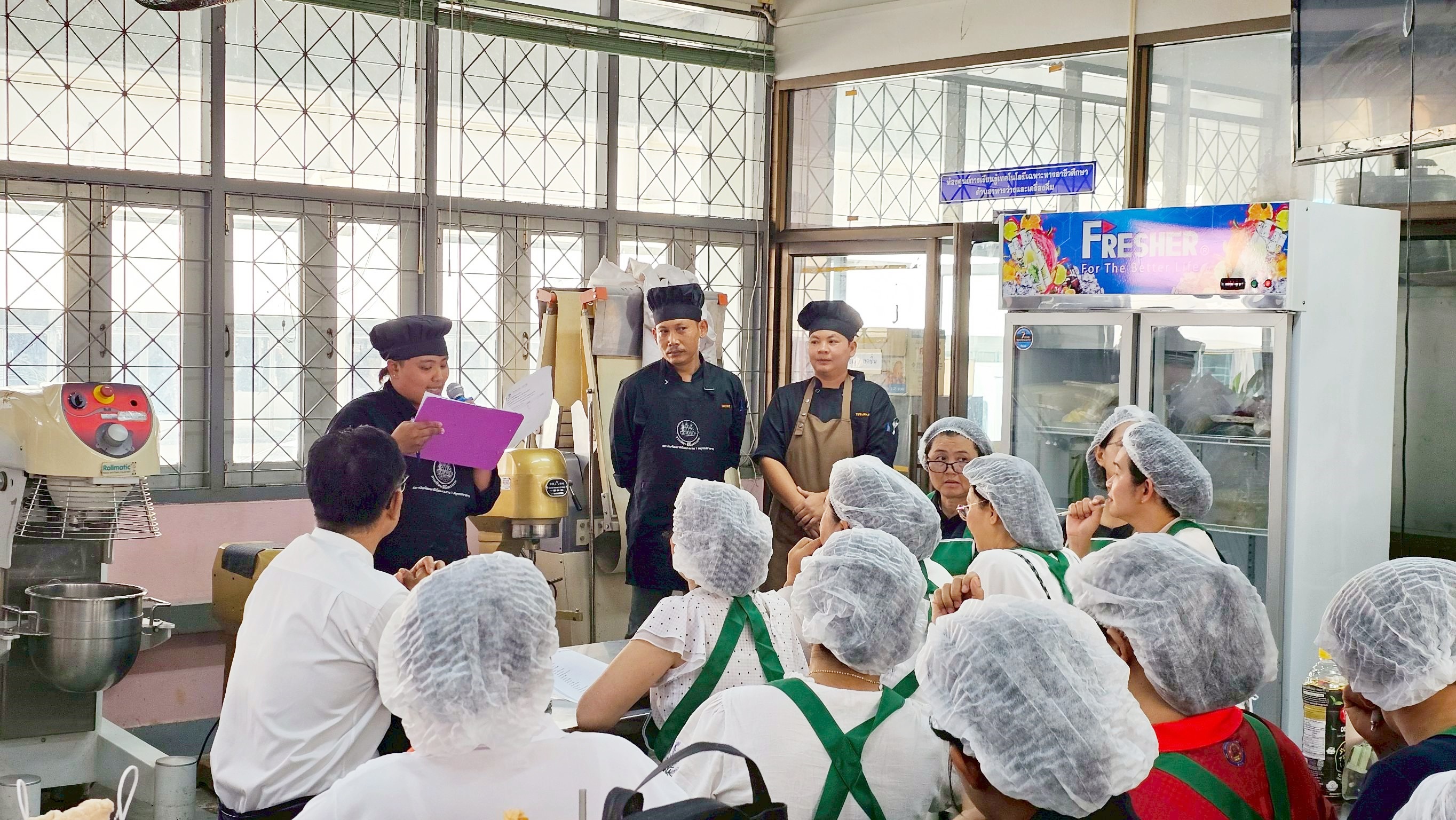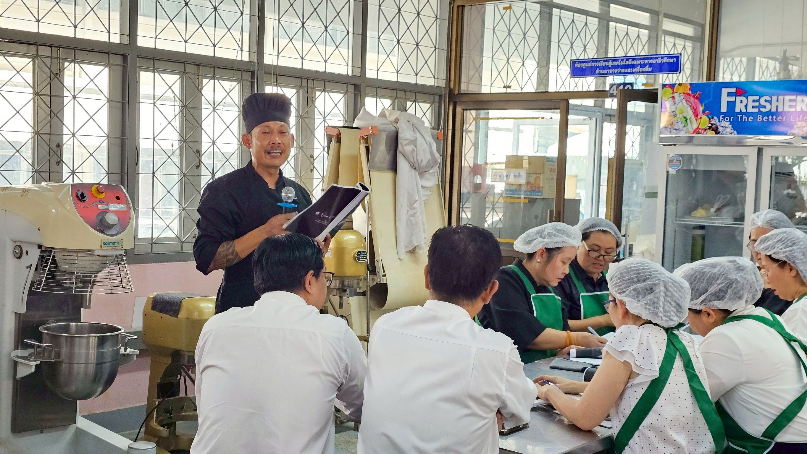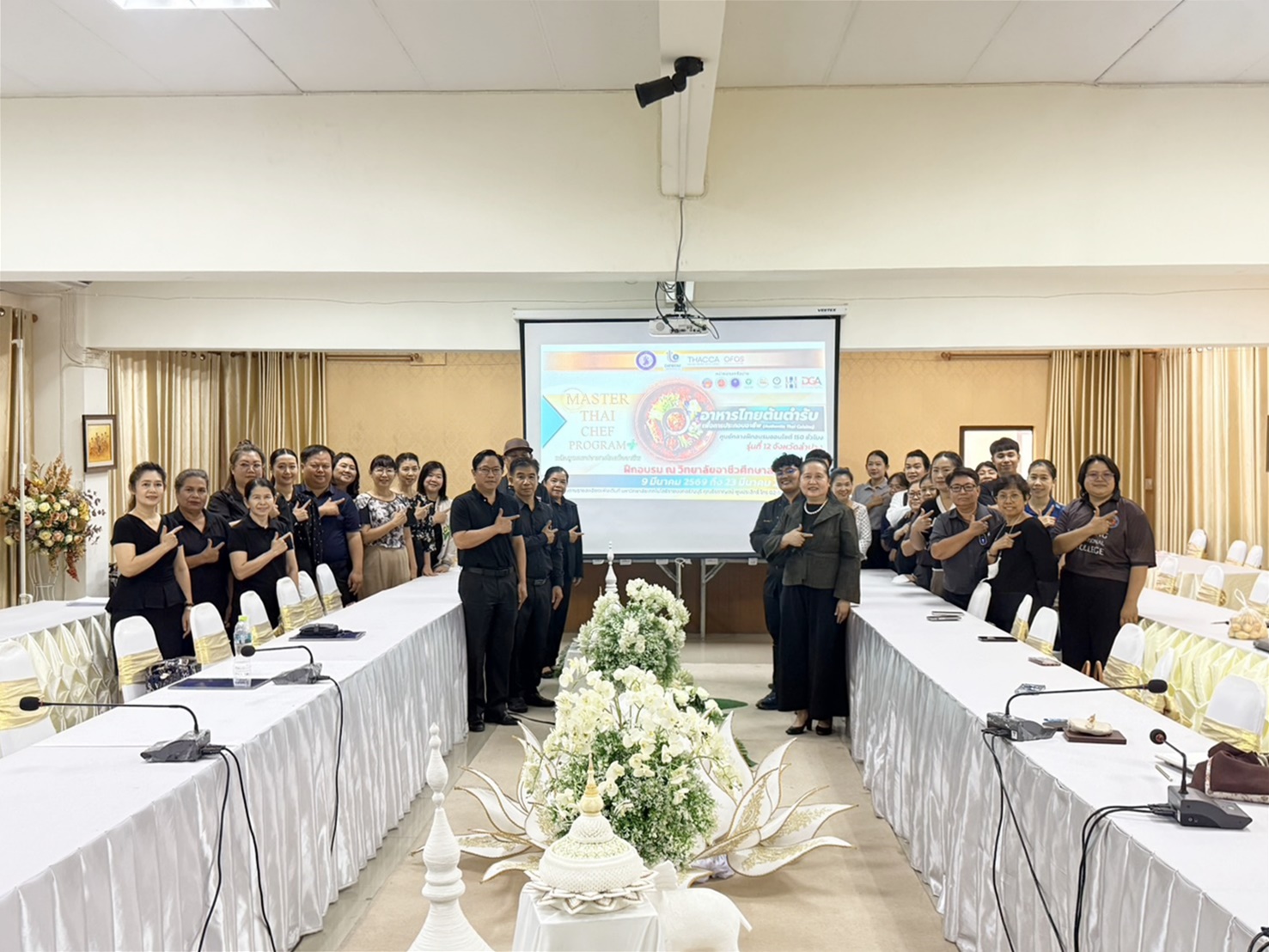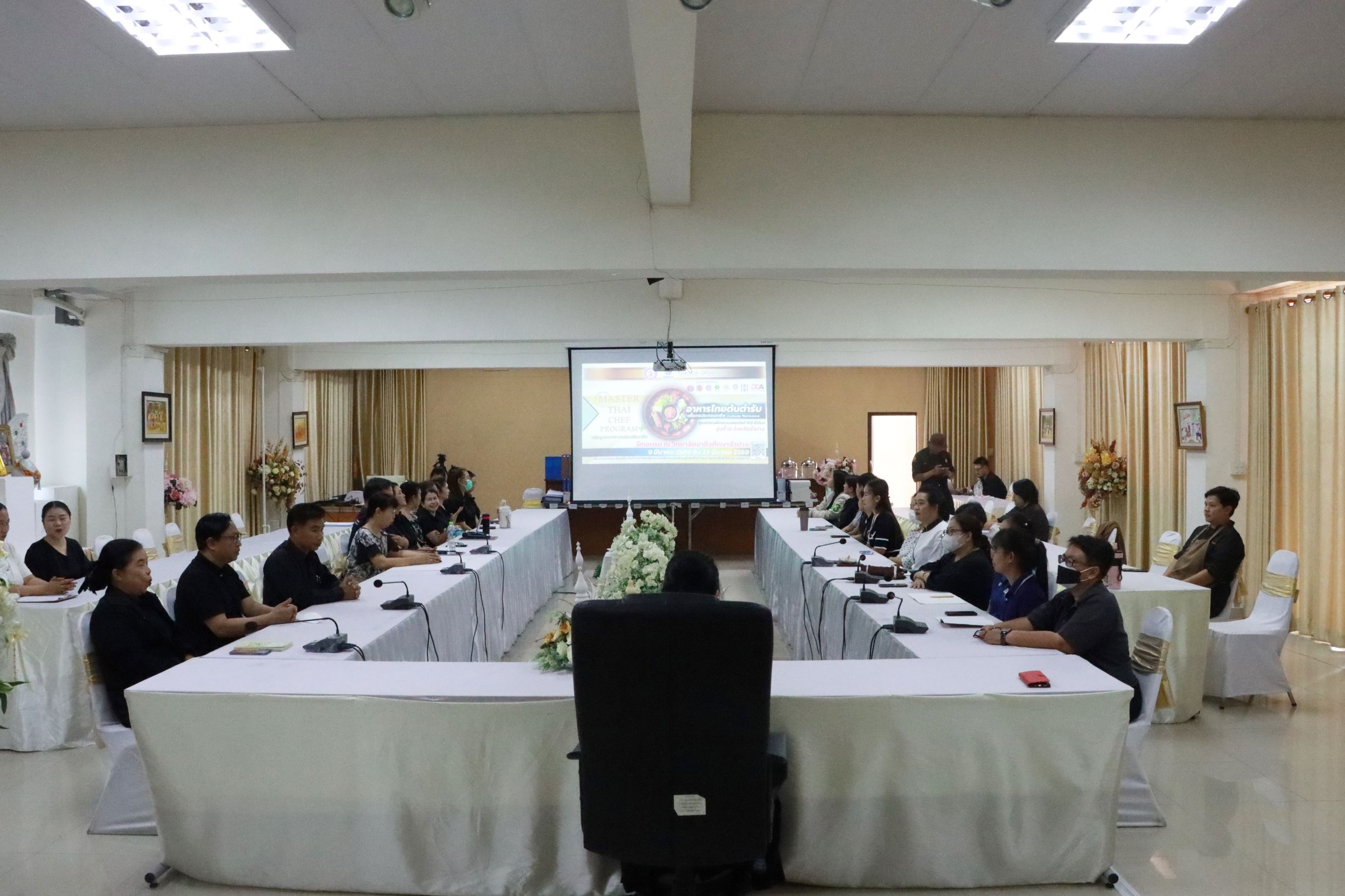 วันจันทร์ที่ 9 มีนาคม 2569 เวลา 09.00 น. ดร.ยุภาภรณ์ เทพจันทร์ เป็นประธานในพิธีเปิดการอบรม หลักสูตรเชฟอาหารไทยมืออาชีพ (Master Thai Chef Program) หลักสูตรอาหารไทยต้นตำรับ (Authentic Thai Cuisine) ภายใต้โครงการส่งเสริมซอฟต์พาวเวอร์สาขาอาหาร โดยกรมส่งเสริมอุตสาหกรรม กระทรวงอุตสาหกรรม ร่วมกับ THACCA OFOS มีวัตถุประสงค์เพื่อพัฒนาศักยภาพ และยกระดับทักษะด้านอาหารไทยแบบมืออาชีพ นำไปสู่การประกอบอาชีพอย่างยั่งยืน ได้รับโอกาสในการต่อยอดสู่อาชีพทั้งในประเทศและต่างประเทศ จัดอบรมให้แก่ผู้บริหาร คณะครู บุคลากรทางการศึกษาจำนวน 30 คน ซึ่งสามารถนำไปบูรณาการการจัดการเรียนการสอนได้ จัดขึ้นระหว่างวันที่ 9 – 23 มีนาคม 2569 ในรูปแบบออนไลน์ภาคทฤษฎี 90 ชั่วโมง และการฝึกอบรมเชิงปฏิบัติ 150 ชั่วโมง ณ ห้องปฏิบัติการครัวร้อน ครัวเย็น วิทยาลัยอาชีวศึกษาลำปาง ดำเนินการสอนโดยผู้เชี่ยวชาญและมีประสบการณ์สูงด้านอาหาร จัดสอนกว่า 60 เมนู เช่น อาหารไทยยอดนิยม อาหารพื้นถิ่น อาหารไทยต้นตำรับที่เน้นเทคนิคการปรุงแบบดั้งเดิม เพื่อรักษาเอกลักษณ์วัฒนธรรมอาหารไทย รวมถึงการเรียนรู้เทคนิคการทำอาหารชั้นสูง การบริหารจัดการธุรกิจ การสร้างแบรนด์ นำไปสู่การผลักดัน Soft Power อาหารไทยให้เป็นที่รู้จักไปทั่วโลก