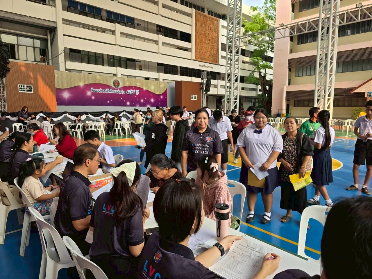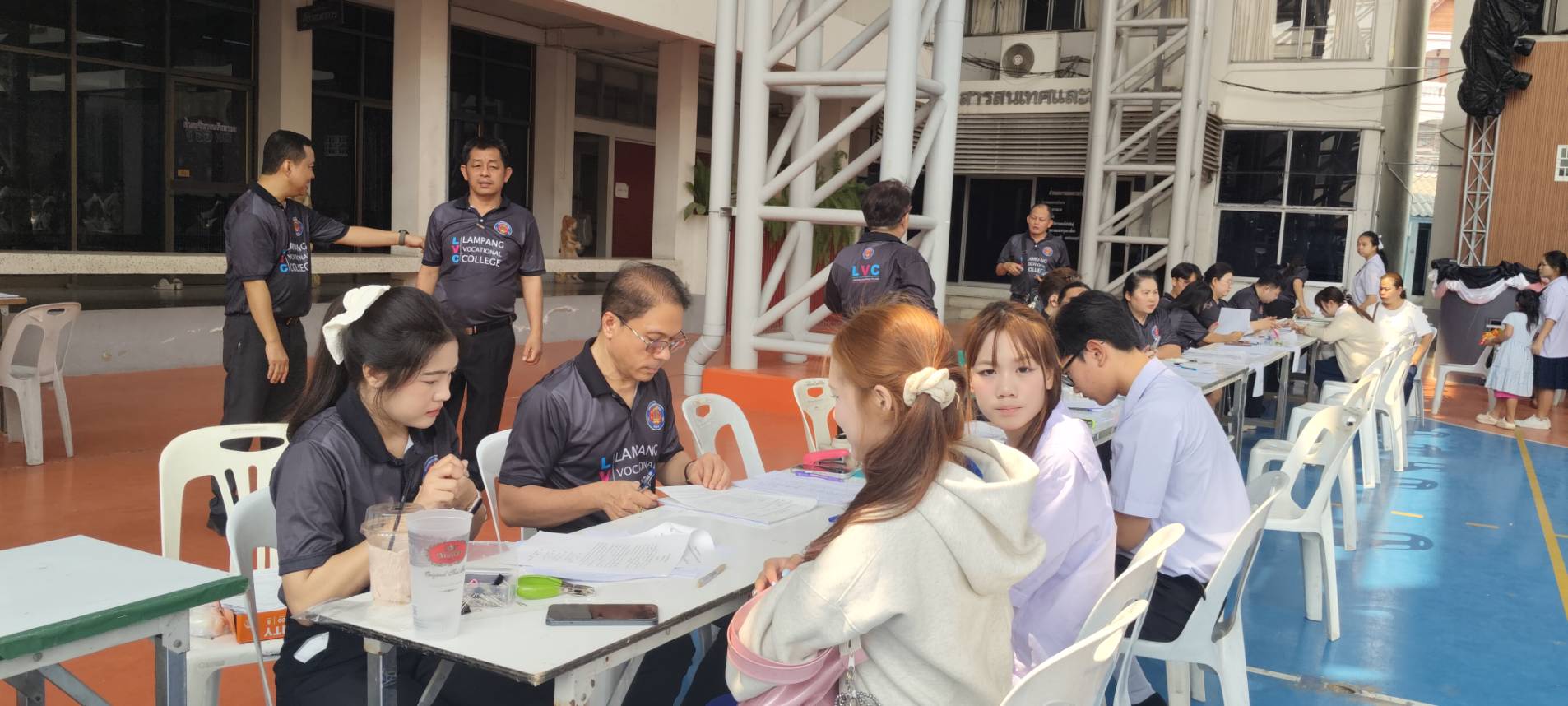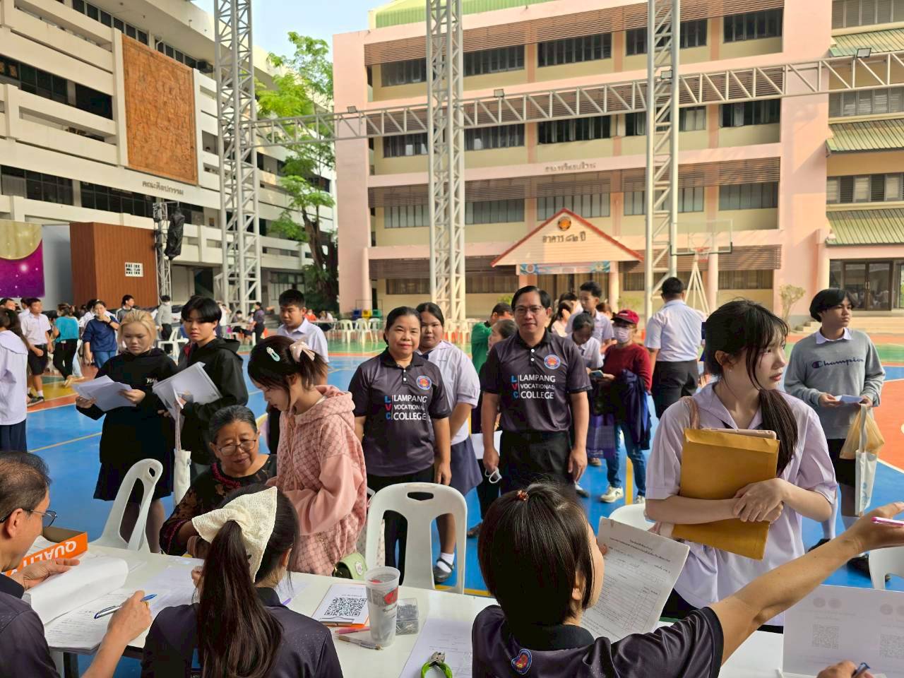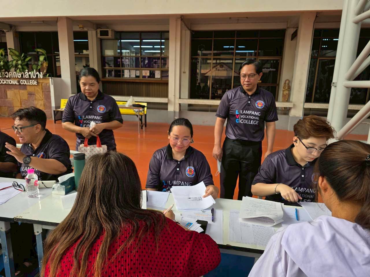 วันอังคารที่ 7 เมษายน 2569 เวลา 08.30 น. วิทยาลัยอาชีวศึกษาลำปาง ดำเนินการรับมอบตัวนักเรียน นักศึกษาใหม่ ประจำปีการศึกษา 2569 โดย ดร.ยุภาภรณ์ เทพจันทร์ ผู้อำนวยการฯ มอบหมายให้คณะผู้บริหาร ตรวจเยี่ยม ให้กำลังใจคณะครูและบุคลากรที่ปฏิบัติหน้าที่ให้เป็นไปด้วยความเรียบร้อยทุกขั้นตอน และต้อนรับอำนวยความสะดวกให้แก่ผู้ปกครอง นักเรียน นักศึกษาใหม่ที่มารายงานตัว ณ บริเวณโดมอเนกประสงค์ วิทยาลัยอาชีวศึกษาลำปาง อำเภอเมือง จังหวัดลำปาง