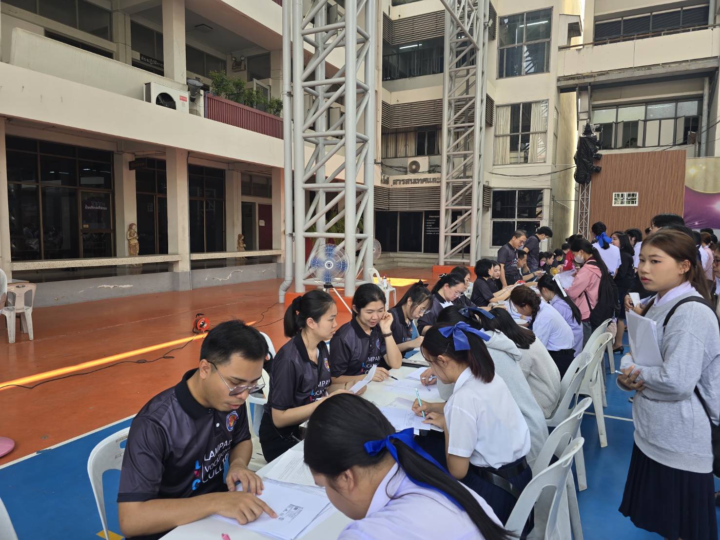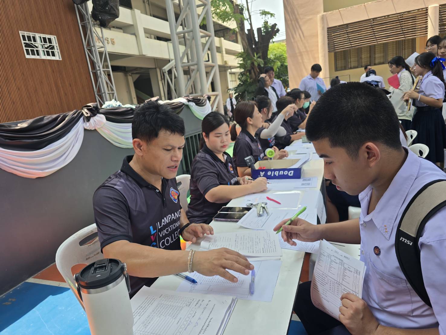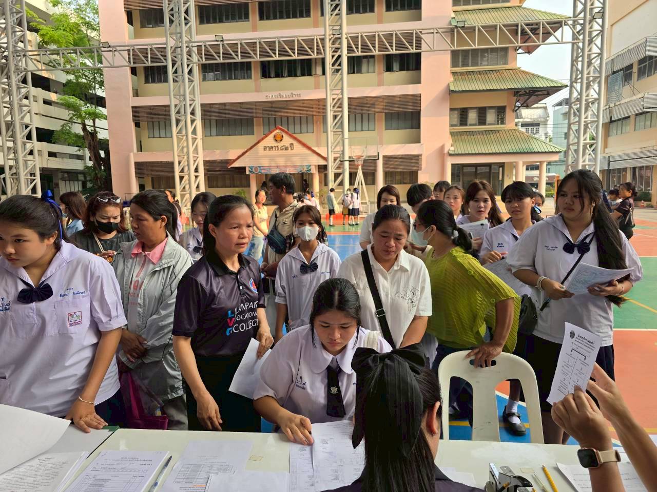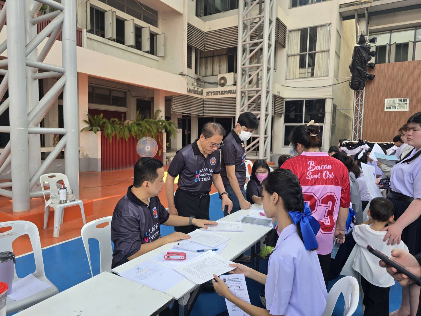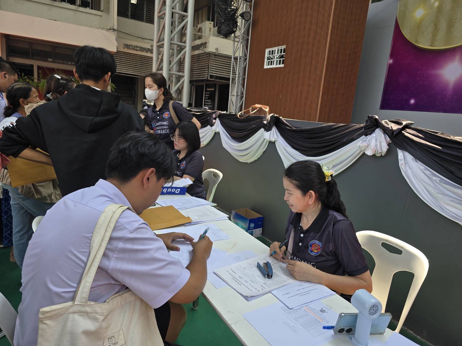 วันอังคารที่ 7 เมษายน 2569 เวลา 08.30 น. วิทยาลัยอาชีวศึกษาลำปาง ดำเนินการรับมอบตัวนักเรียน นักศึกษาใหม่ ประจำปีการศึกษา 2569 โดย ดร.ยุภาภรณ์ เทพจันทร์ ผู้อำนวยการฯ มอบหมายให้คณะผู้บริหาร ตรวจเยี่ยม ให้กำลังใจคณะครูและบุคลากรที่ปฏิบัติหน้าที่ให้เป็นไปด้วยความเรียบร้อยทุกขั้นตอน และต้อนรับอำนวยความสะดวกให้แก่ผู้ปกครอง นักเรียน นักศึกษาใหม่ที่มารายงานตัว ณ บริเวณโดมอเนกประสงค์ วิทยาลัยอาชีวศึกษาลำปาง อำเภอเมือง จังหวัดลำปาง