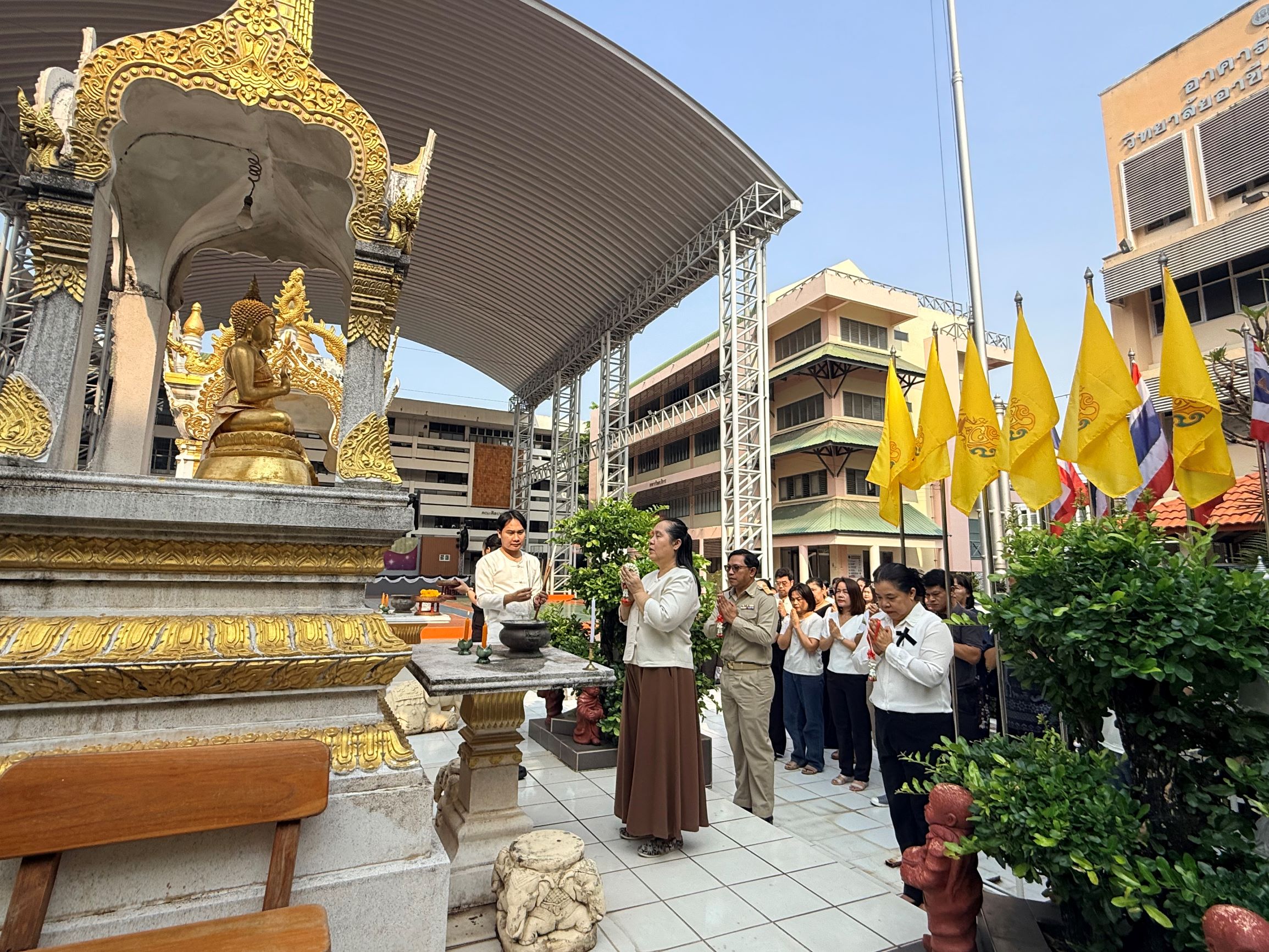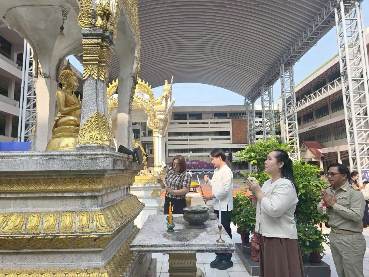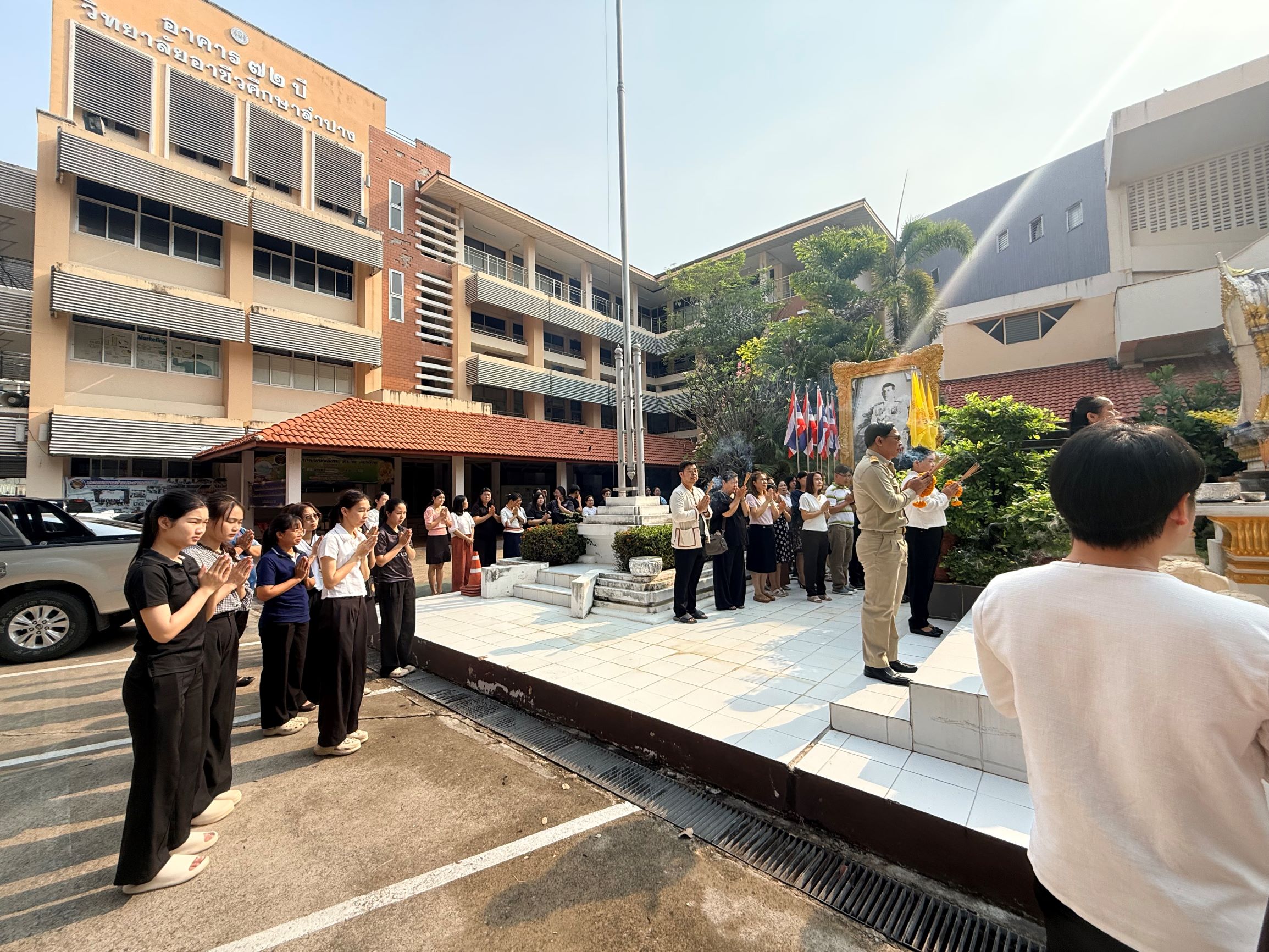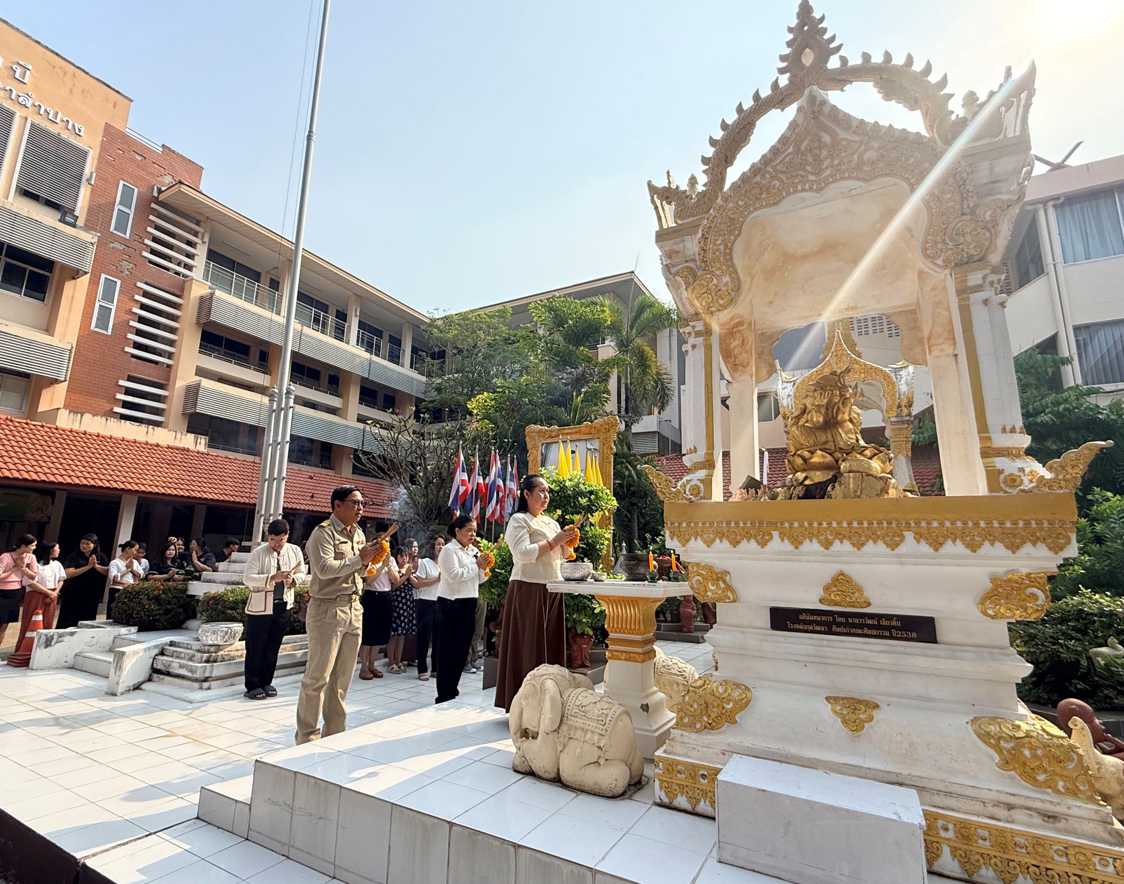 วันอังคารที่ 28 เมษายน 2569 เวลา 08.30 น. ดร.ยุภาภรณ์ เทพจันทร์ ผู้อำนวยการวิทยาลัยอาชีวศึกษาลำปาง พร้อมด้วยคณะผู้บริหาร คณะครู บุคลากรทางการศึกษาร่วมประกอบพิธีสักการะสิ่งศักดิ์สิทธิ์ประจำวิทยาลัยฯ กราบสักการะพระพุทธรูป พระพิฆเนศ พระภูมิเจ้าที่ สิ่งศักดิ์สิทธิ์ที่เคารพนับถือเพื่อความเป็นสิริมงคล สร้างขวัญกำลังใจ และเป็นการแสดงถึงความเคารพศรัทธาต่อสิ่งศักดิ์สิทธิ์ของสถานศึกษา
