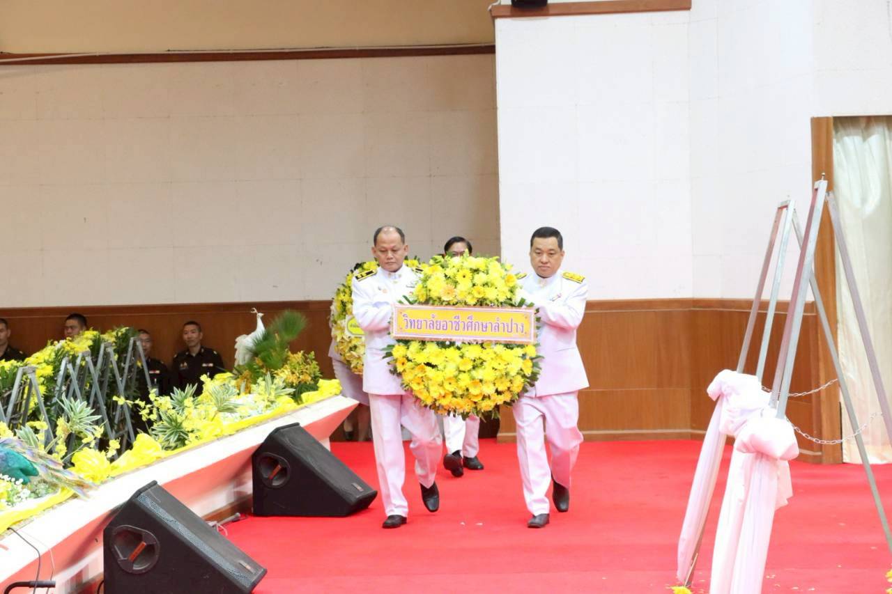 วันจันทร์ที่ 13 ตุลาคม 2568 เวลา 07.00 น. ดร.ยุภาภรณ์ เทพจันทร์ ผู้อำนวยการวิทยาลัยอาชีวศึกษาลำปาง มอบหมายให้ ว่าที่ร้อยตรี นครินทร์ สนมฉ่ำ รองผู้อำนวยการฝ่ายบริหารทรัพยากร นำคณะครูร่วมพิธีสวดพระพุทธมนต์และทำบุญตักบาตรถวายพระราชกุศล เนื่องในวันคล้ายวันสวรรคต พระบาทสมเด็จพระบรมชนกาธิเบศร มหาภูมิพลอดุลยเดชมหาราช บรมนาถบพิตร (วันนวมินทรมหาราช) เพื่อแสดงความจงรักภักดี และน้อมรำลึกในพระมหากรุณาธิคุณ ณ หอประชุมจังหวัดลำปาง ศาลากลางจังหวัดลำปาง อำเภอเมืองลำปาง จังหวัดลำปาง
