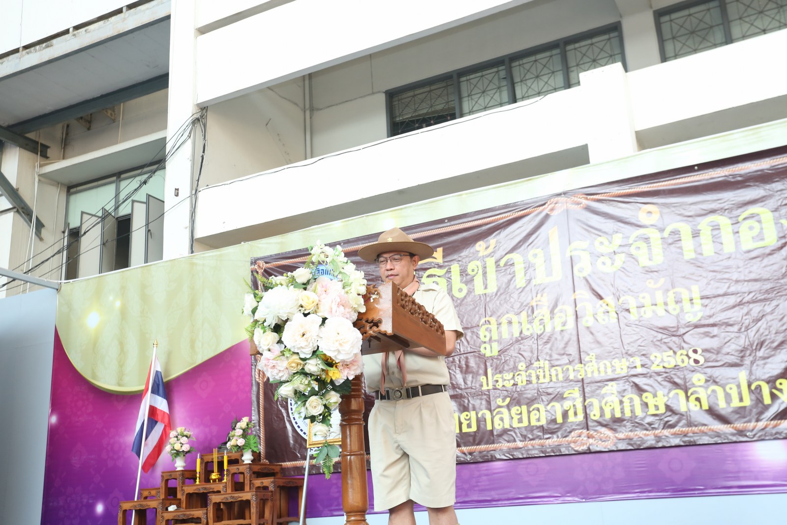ดร.ยุภาภรณ์ เทพจันทร์ ผู้อำนวยการวิทยาลัยอาชีวศึกษาลำปาง มอบหมายให้ ว่าที่ร้อยตรี นครินทร์ สนมฉ่ำ รองผู้อำนวยการฝ่ายบริหารทรัพยากร เป็นประธานในพิธีเปิดกองลูกเสือ-เนตรนารีวิสามัญ โครงการเข้าค่ายพักแรมและพิธีเข้าประจำกองลูกเสือ เนตรนารีวิสามัญ (ลูกเสือจิตอาสาทำความดีด้วยหัวใจ) PURIFY LVC. SCOUT ประจำปีการศึกษา 2568 จัดขึ้นเพื่อระลึกถึงพระมหากรุณาธิคุณของพระบาทสมเด็จพระมงกุฎเกล้าเจ้าอยู่หัว พระบิดาแห่งลูกเสือไทย และเพื่อแสดงความพร้อมในการเป็นลูกเสือวิสามัญอย่างเต็มตัว มีความเสียสละ อดทน รักชาติ ศาสนา พระมหากษัตริย์ มีกิจกรรมเดินทางไกล กิจกรรมนันทนาการ การทดสอบสมรรถนะกำลังใจ และพิธีประดับแถบ 3 สี ลูกเสือวิสามัญ จัดขึ้นระหว่างวันที่ 16 - 17 กุมภาพันธ์ 2569 ณ วิทยาลัยอาชีวศึกษาลำปาง อำเภอเมือง จังหวัดลำปาง