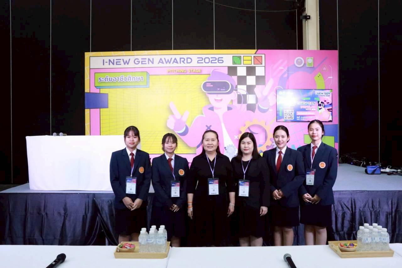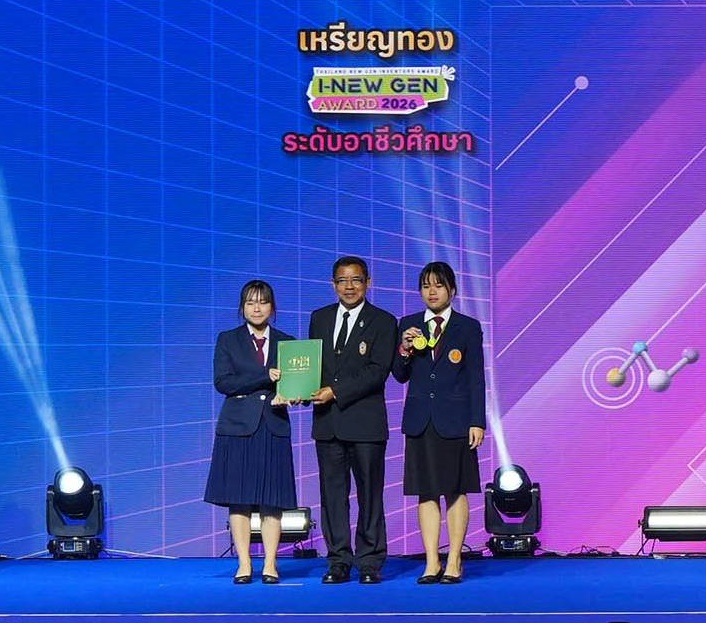 รางวัลเหรียญทอง ระดับประเทศประกวดสิ่งประดิษฐ์และนวัตกรรมระดับเยาวชน “Thailand New Gen Inventors Award 2026” (I – New Gen Award 2026) ระดับอาชีวศึกษา กลุ่มเรื่องอาหาร ผลงานนวัตกรรม เรื่อง เครื่องดื่มข้าวหอมมะลิดำโพสไบโอติก