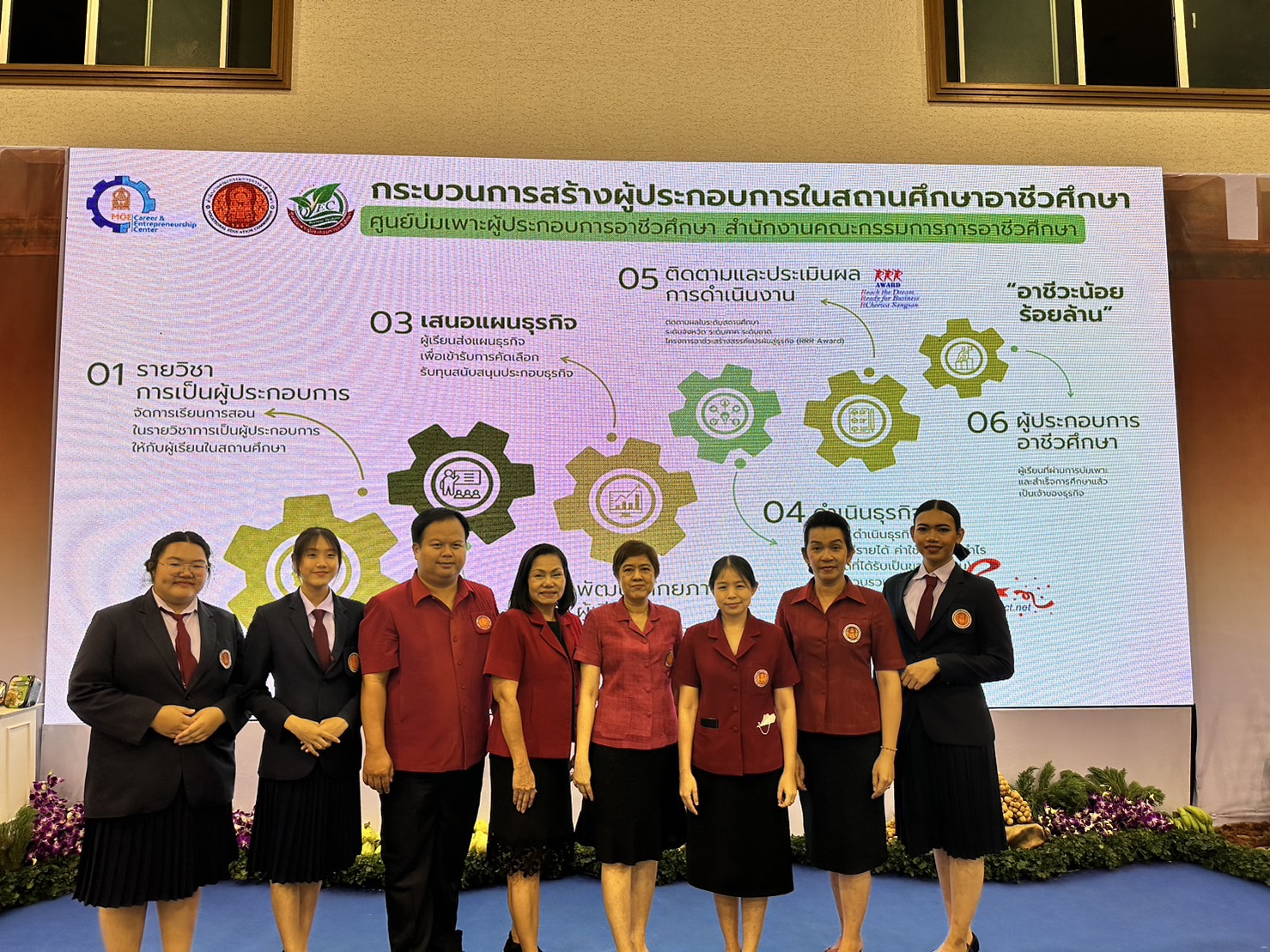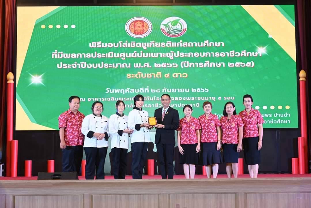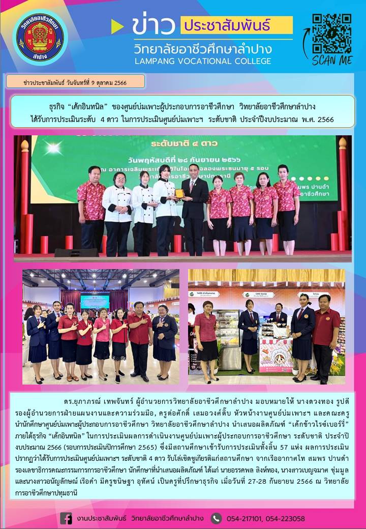 รับการประเมินศูนย์บ่มเพาะฯ ระดับชาติ 4 ดาว นำเสนอผลิตภัณฑ์ “เค้กข้าวไรซ์เบอร์รี่”ภายใต้ธุรกิจ “เค้กอินทนิล” ในการประเมินผลการดำเนินงานศูนย์บ่มเพาะผู้ประกอบการอาชีวศึกษา ระดับชาติ ประจำปีงบประมาณ 2566